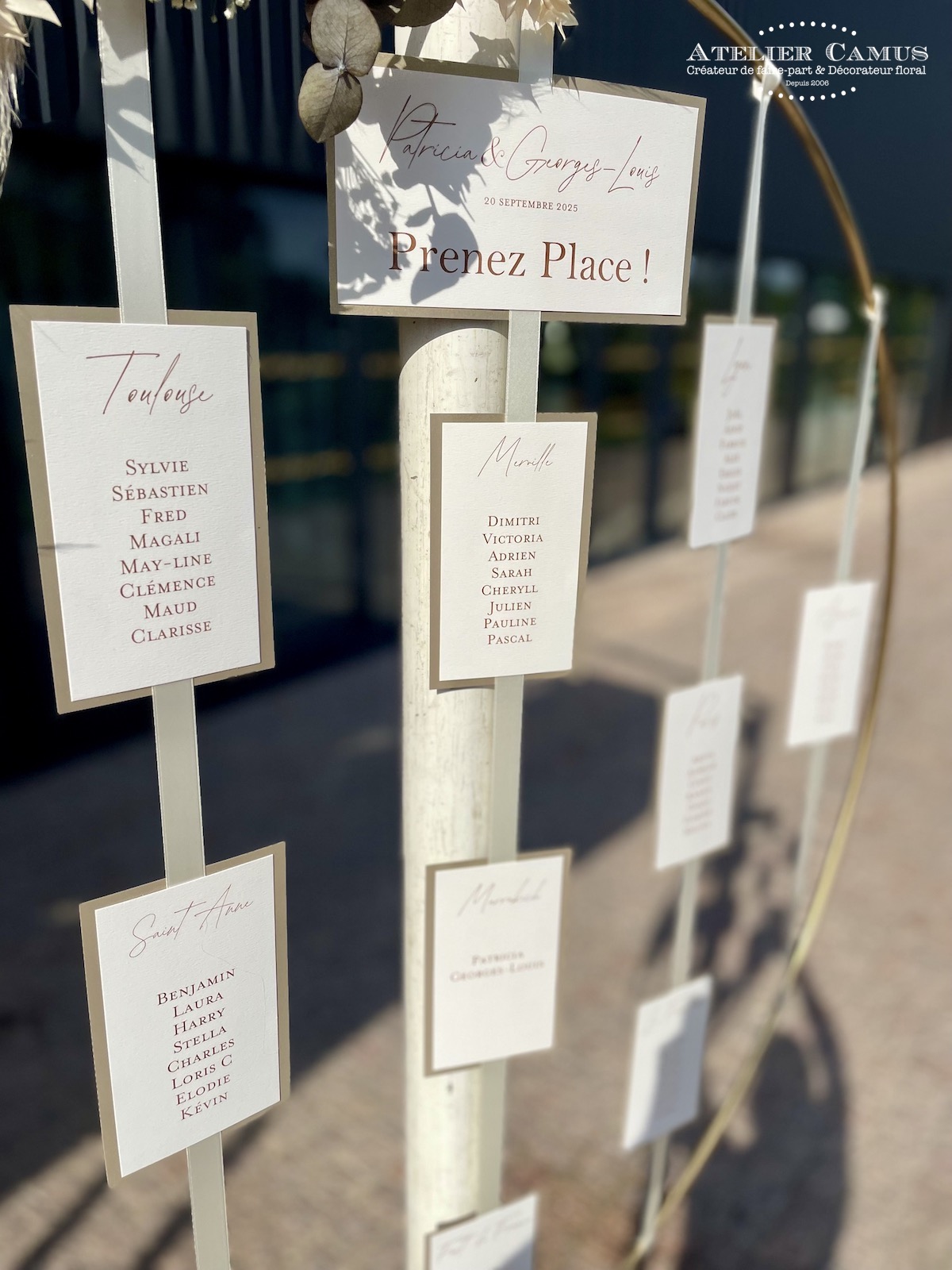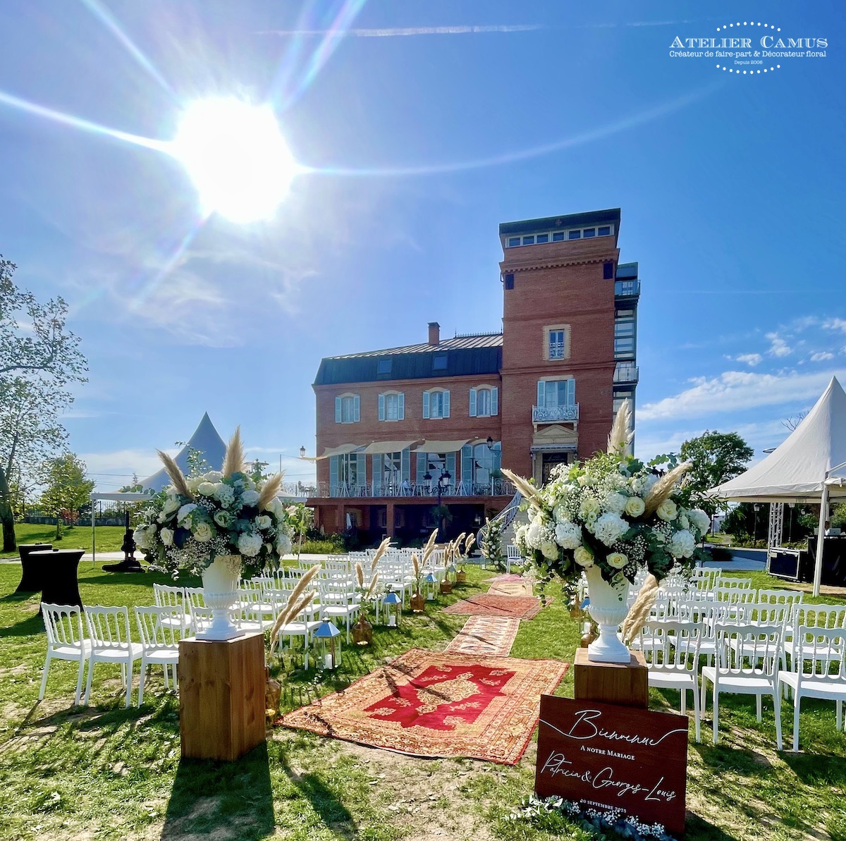 Le Château de la Garrigue, décoration de mariage et papeterie par l’Atelier Camus.