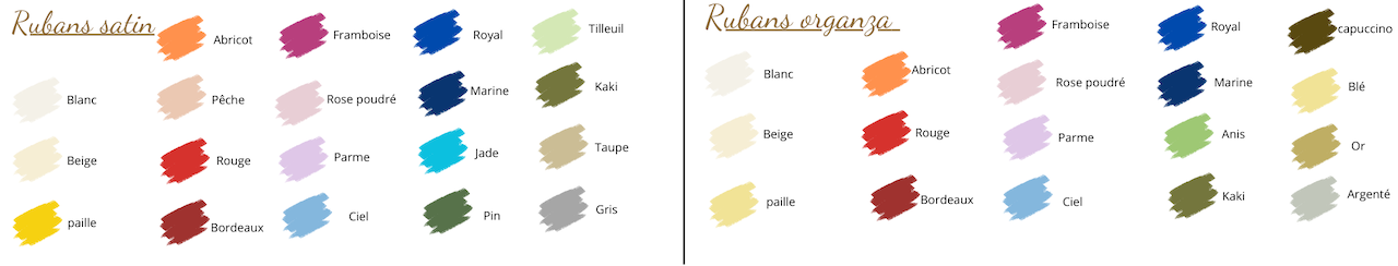 Fermeture par le ceinturage d’un ruban satin 40mm de couleur Blanc Naturel.