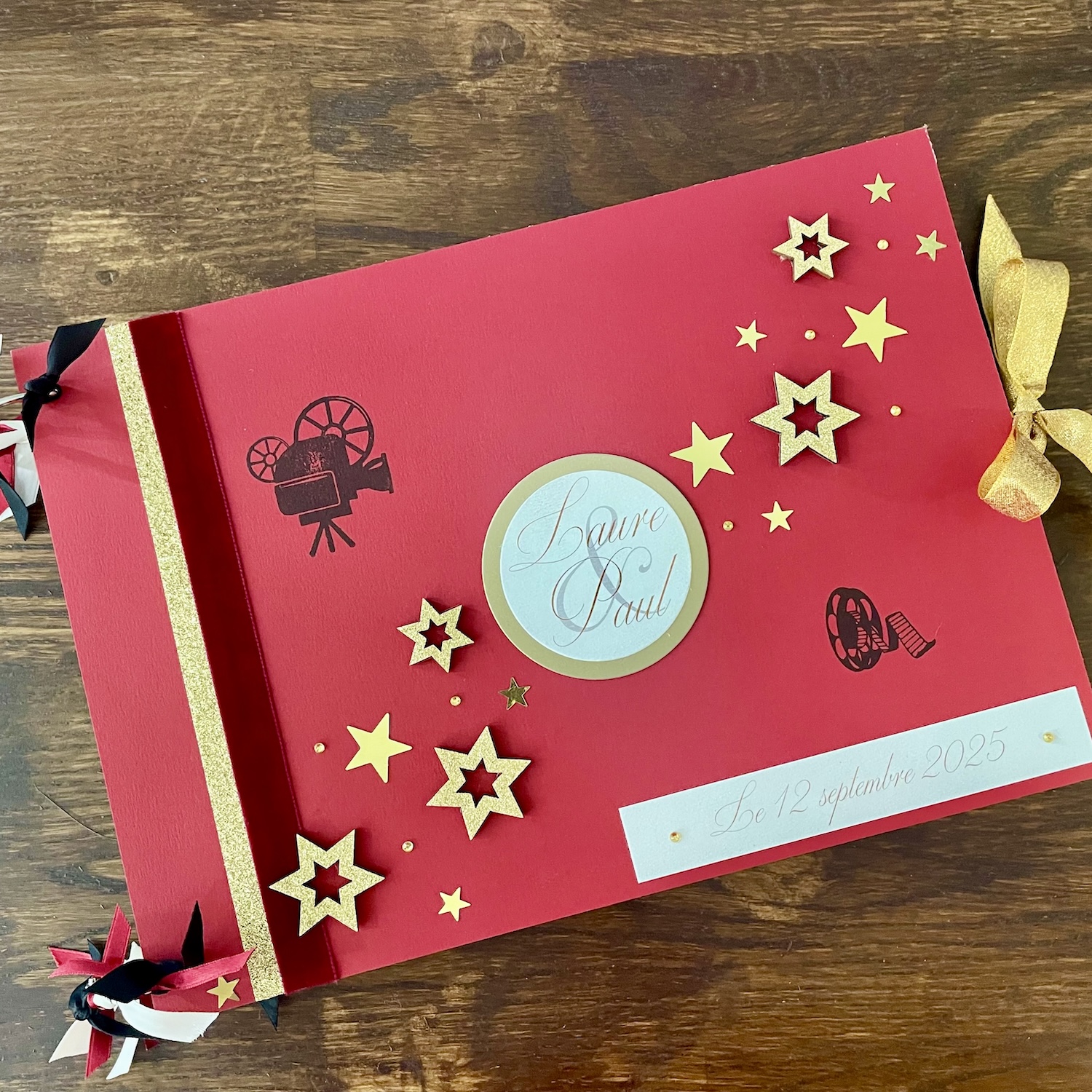 livre d'or de mariage réalisé à la main avec des découpes en relief lui donnant un rendu unique